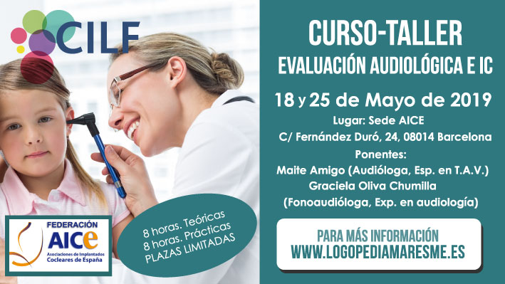Els dies 18 i 25 de maig, a la seu d’AICE, Maite Amigo (audiòloga especialista en teràpia auditiu verbal) i Graciela Oliva (fonoaudiòloga experta en audiologia), sòcies professionals de l’entitat, impartiran un Curs-taller d’Avaluació Audiològica i Implant Coclear.
